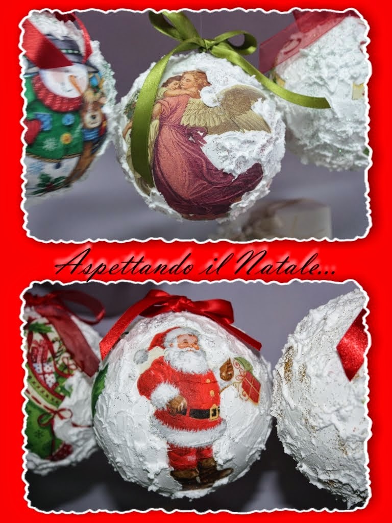 Christmas balls decorated with decoupage technique pasta and snow ...